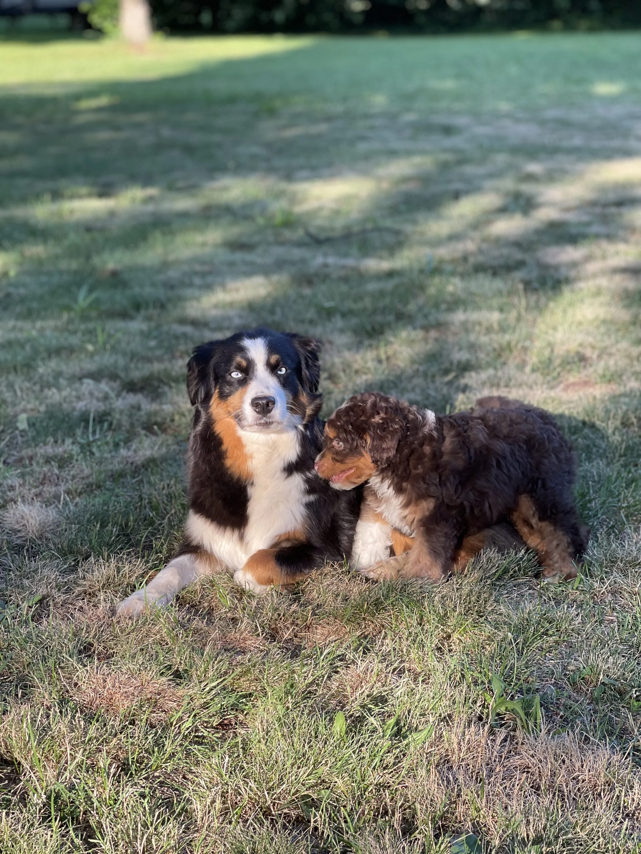 Bella is a beautiful 35 lb purebred Black Tri female Australian Shepherd that was born 6-11-2022. She has gorgeous blue eyes and a very gentle manner. She is extremely smart and always willing to please. She wants nothing more than to be by your side and protect you. She is not an extremely active Shepherd, she does not run when outside, she prefers to stay right close by your side. I would like her to go to a home where she is the only dog in the house.. She will be sold on a strict spay contract and ready to make you the most important person in her life just before Valentine’s Day 2026. Please reach out by the website form or feel free to contact me any time by text or call 616-843-1256